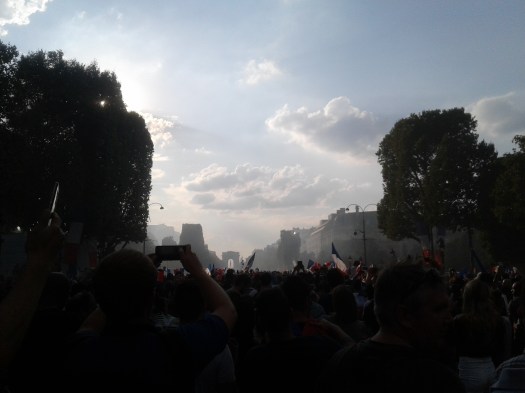 “Allez les Bleus“ soccer song (pronounced “allay lay bleugh”) is imprinted in my memory for a very long time now. My sister’s boyfriend and I sing this song to each other until this day because it cheers us up and brings back unforgettable memories. Fireworks, broken glass and unbelievable air show was followed sardine style subway ride home.